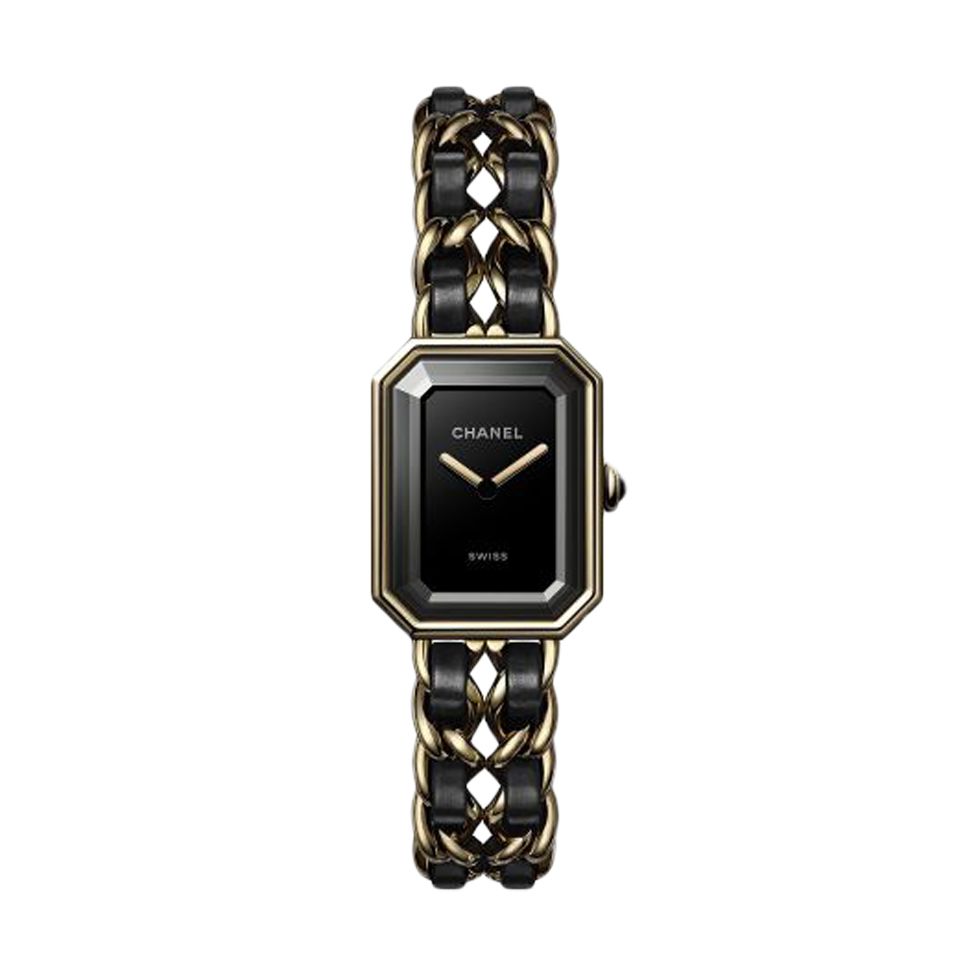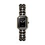 With the PREMIÈRE ORIGINALE, CHANEL celebrates modern femininity that will easily take you from day to night. The octagonal case surrounding the Swiss Made quartz movement is reminiscent of the Parisian Place Vendôme. The black lacquered dial presents the CHANEL logo as well as two gold-coloured hands. The crown is decorated with an onyx cabochon. A steel chain bracelet coated with 18K yellow gold interwoven with a black leather ribbon adds the finishing touch.