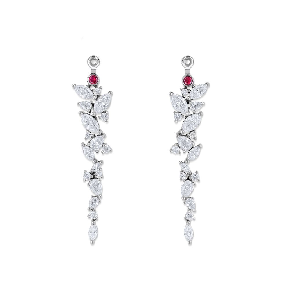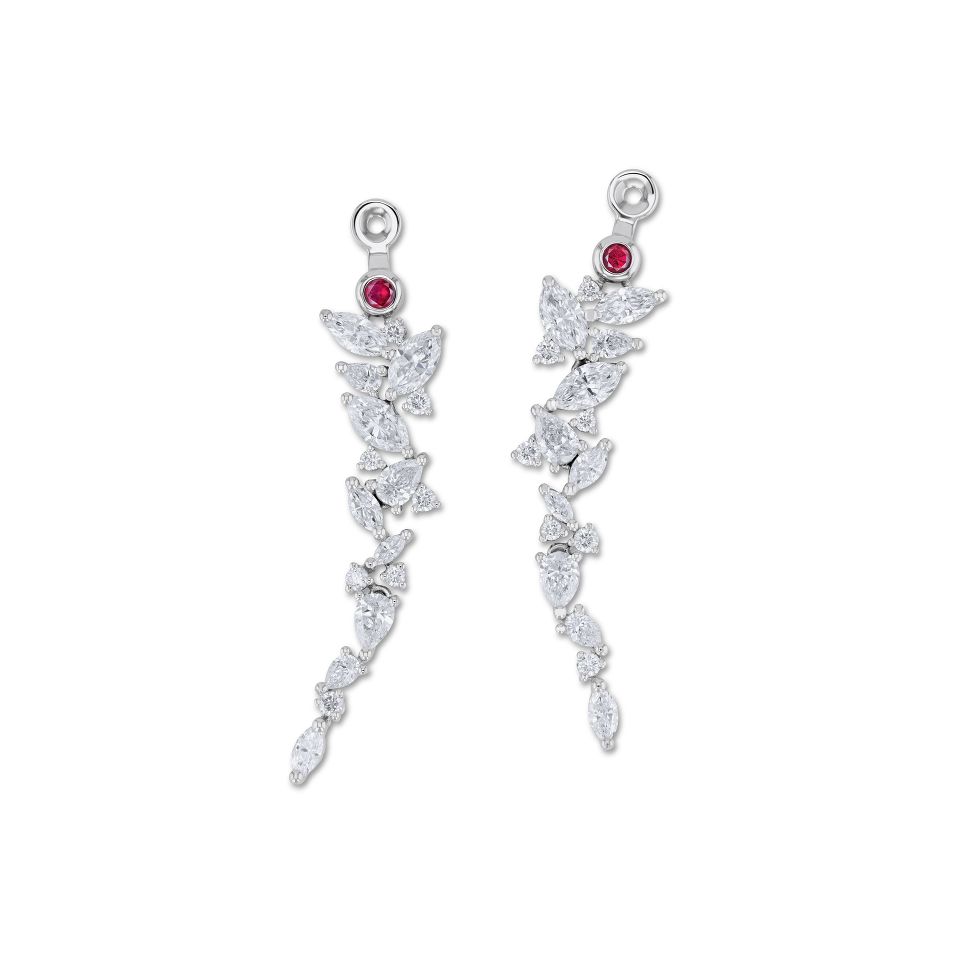 Earring pendants in white gold with 14 brilliant-cut diamonds totalling 0.22 ct, eight pear-shaped diamonds totalling 0.65 ct and twelve marquise-shaped diamonds totalling 1.27 ct. Pendants can only be worn with other stud pierced earrings.