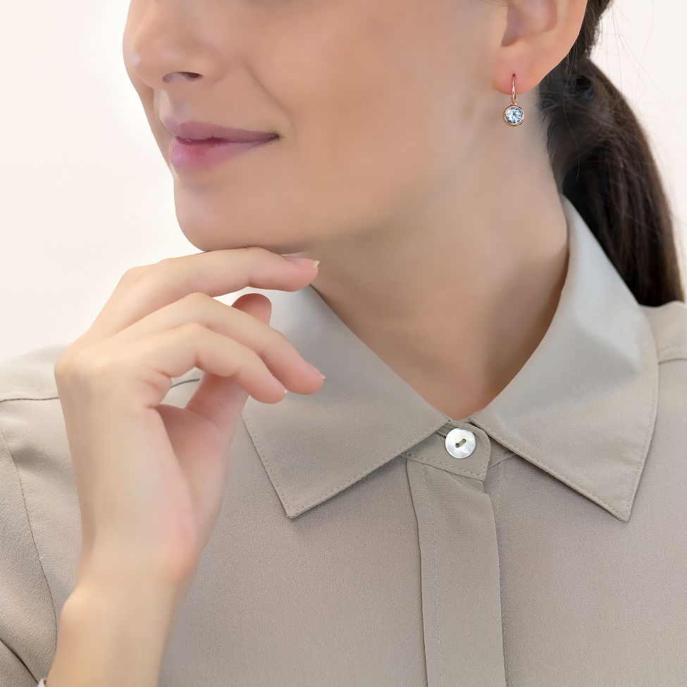 Red gold drop earrings with two light blue round drop earrings totalling 1.46 ct.