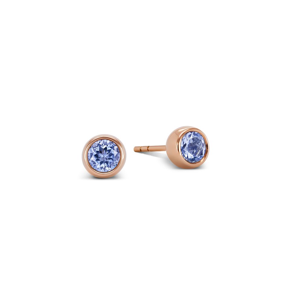 Red gold earstuds with two blue round tanzanites totalling 1.07 ct. Sparks of Fire earstuds can be combined with a variation of matching pendants.