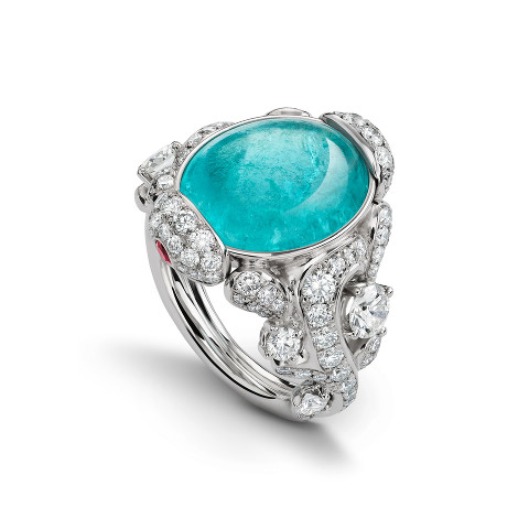 White gold drop earrings with eight pink round tourmalines totalling 2.00 ct as well as 40 brilliant-cut diamonds totalling 0.73 ct.