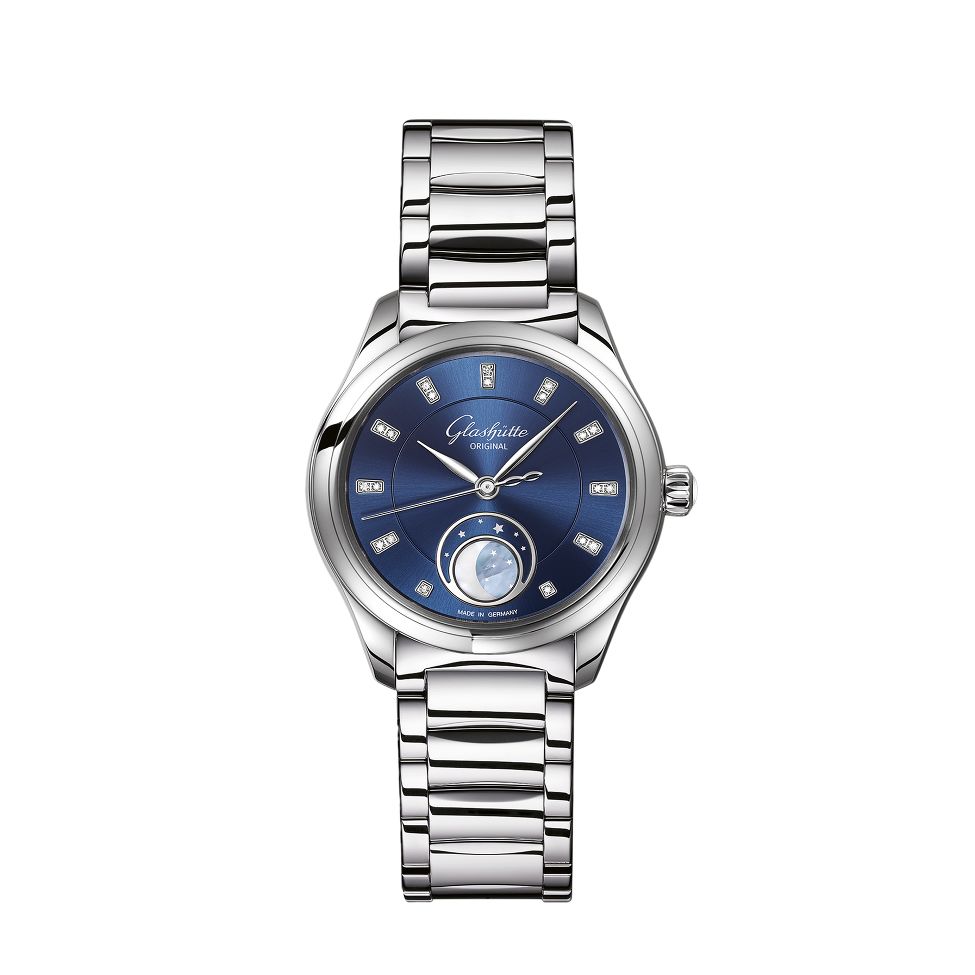 This model is underscoring the Serenade Luna's versatility. The stainless steel case and bracelet, along with the sunray blue dial, embody the fusion of traditional elegance and contemporary design principles that Glashütte Original is renowned for. The inclusion of the automatic Caliber 35-14 assures reliability and precision, making it a true masterpiece.