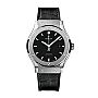 Part of the Hublot Classic Fusion collection, the Titanium Black sports a 42 mm titanium case with a bezel locked down by the six signature H-shaped titanium screws. On the matt black dial with rhodium-plated indices and hands, the date window is presented at three o'clock. Powered by the HUB 1110 self-winding movement, this timepiece offers a power reserve of 42 hours. A black rubber and grey alligator leather strap adds the finishing touch.