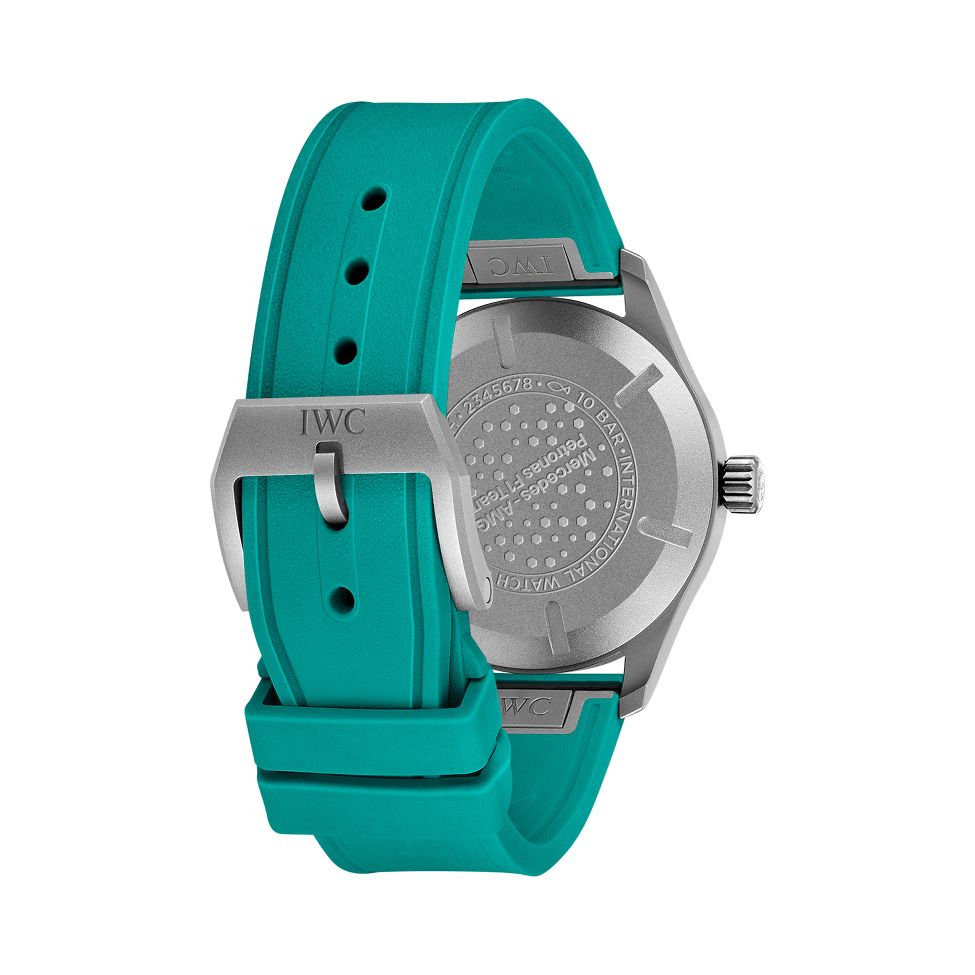 This 40 mm titanium Pilot's Watch is IWC's third official team watch for Mercedes-AMG PETRONAS F1™. It features the EasX-CHANGE® system, screw-down crown, date display, hacking seconds, and a convex sapphire crystal with antireflective coating on both sides. Water-resistant to 10 bar.