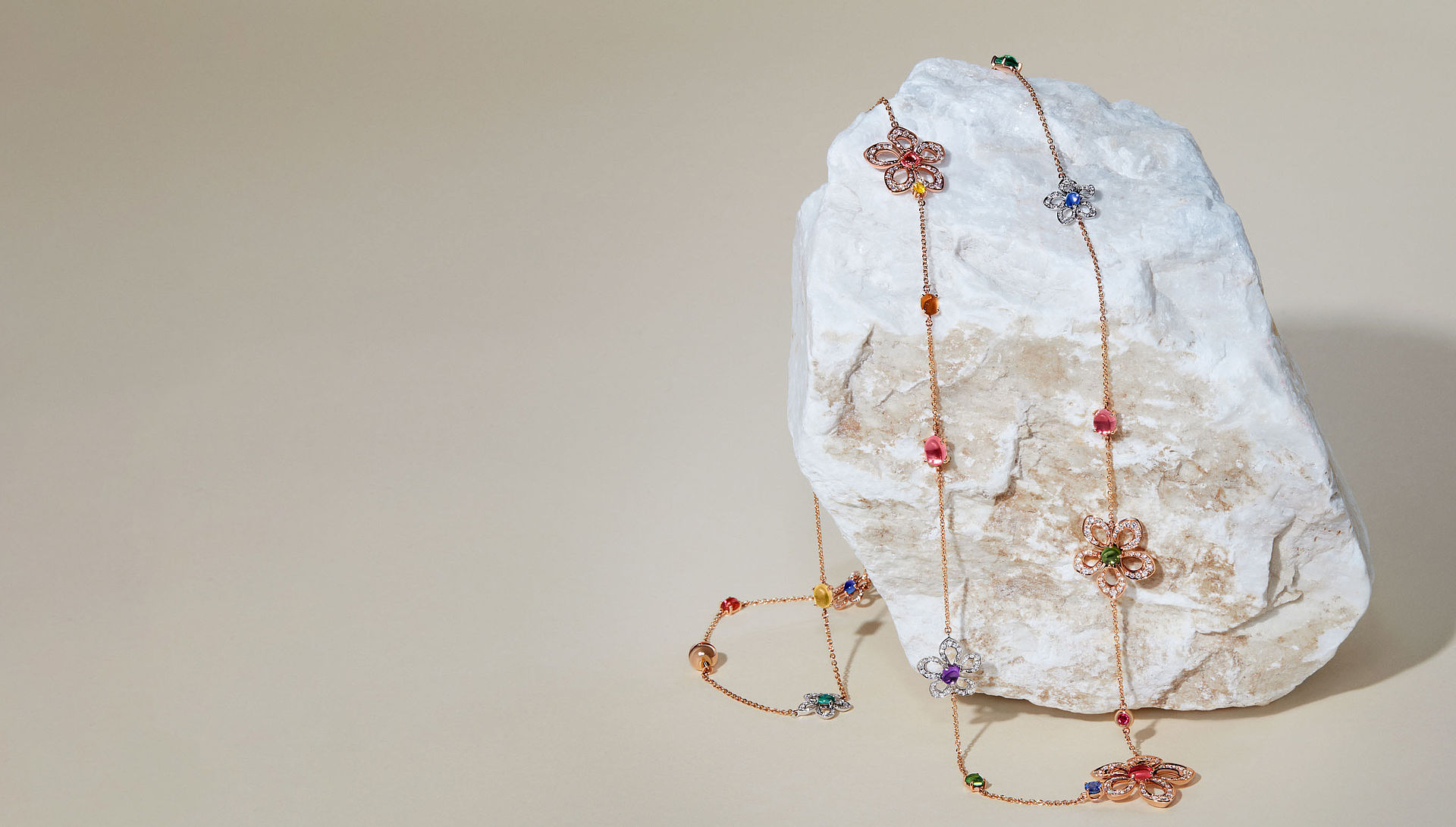 Experienced Gübelin designers create intriguing women’s necklaces inspired by the lavish shapes, found inside the mesmerizing precious gemstones. Coloured gemstones of rare beauty are the centre of attention in necklaces that come in luxurious gold, formed in harmonious shapes, sometimes bold and dramatic, some delicate and understated yet each one with an unmistakable design aesthetics.