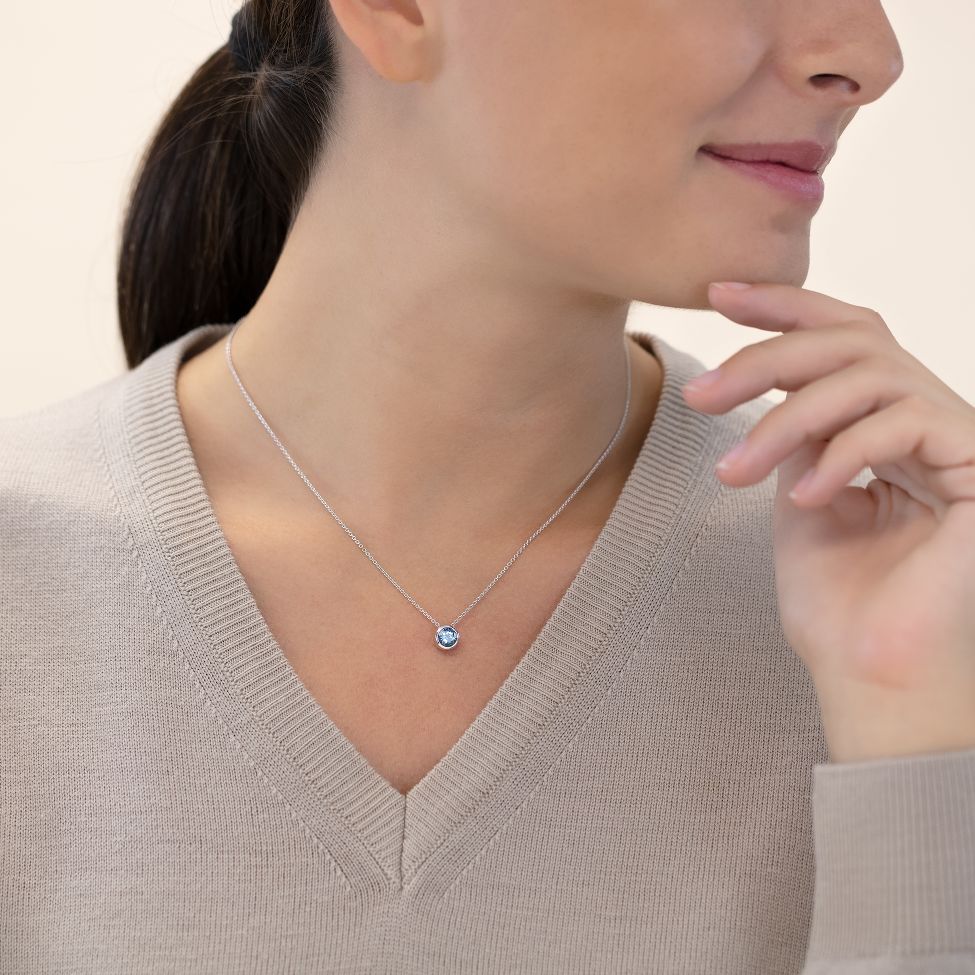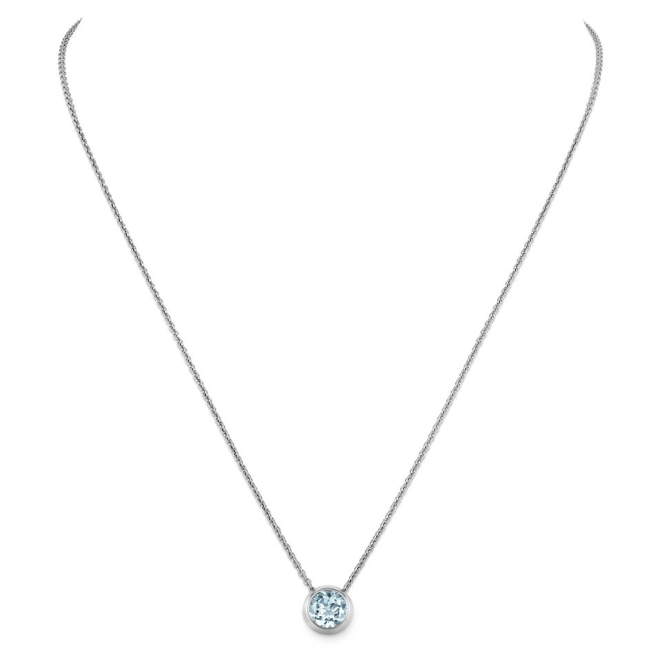 Necklace in white gold with a light blue round aquamarine, 0.79 ct.