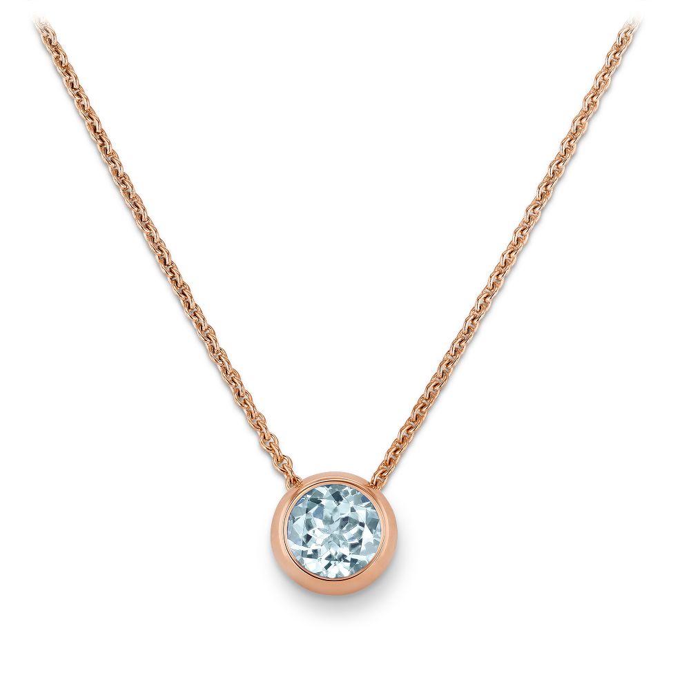 Red gold necklace with a light blue aquamarine, 0.68 ct.