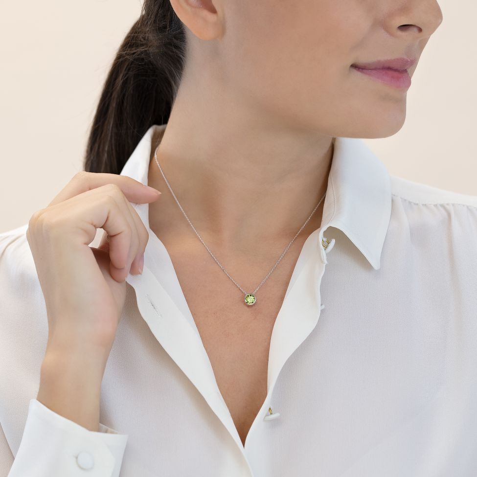 White gold necklace with a green round tourmaline, 0.80 ct.