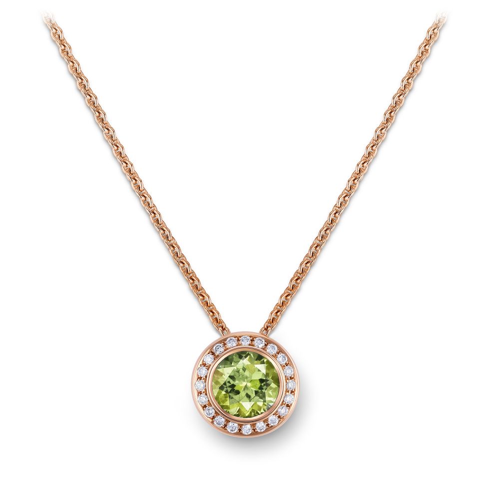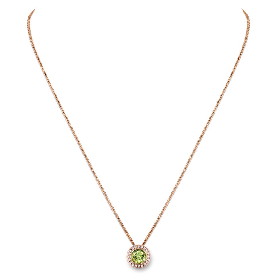 Red gold necklace with a green round tourmaline, 0.78 ct as well as 20 brilliant-cut diamonds totalling 0.06 ct.