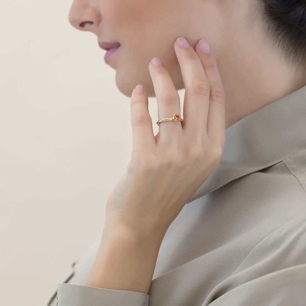 Red gold ring with an orange round mandarine garnet, 0.51 ct.