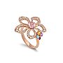 Red gold ring with a light pink cabochon cut morganite, 0.68 ct, an orange round mandarin garnet, 0.10 ct, a light blue round aquamarine, 0.07 ct, a violet round Amethyst, 0.05 ct as well as 54 brilliant-cut diamonds totalling 0.47 ct.