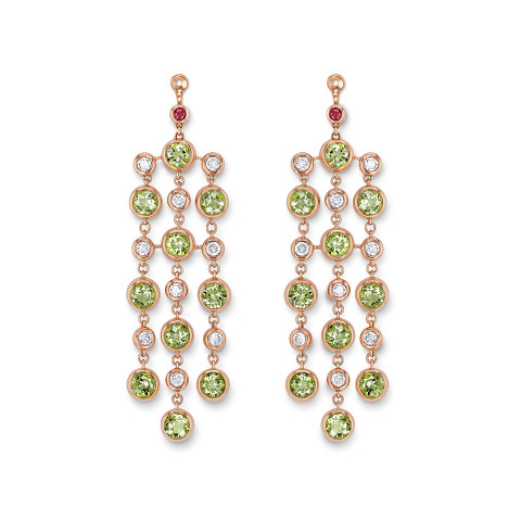 Red gold ring with a round, pink tourmaline, 4.3 mm, and brilliant-cut diamonds.