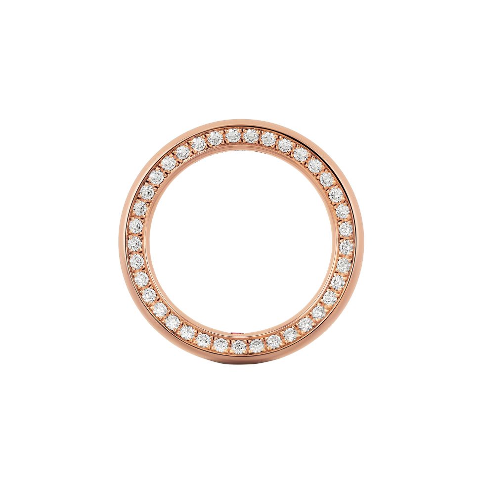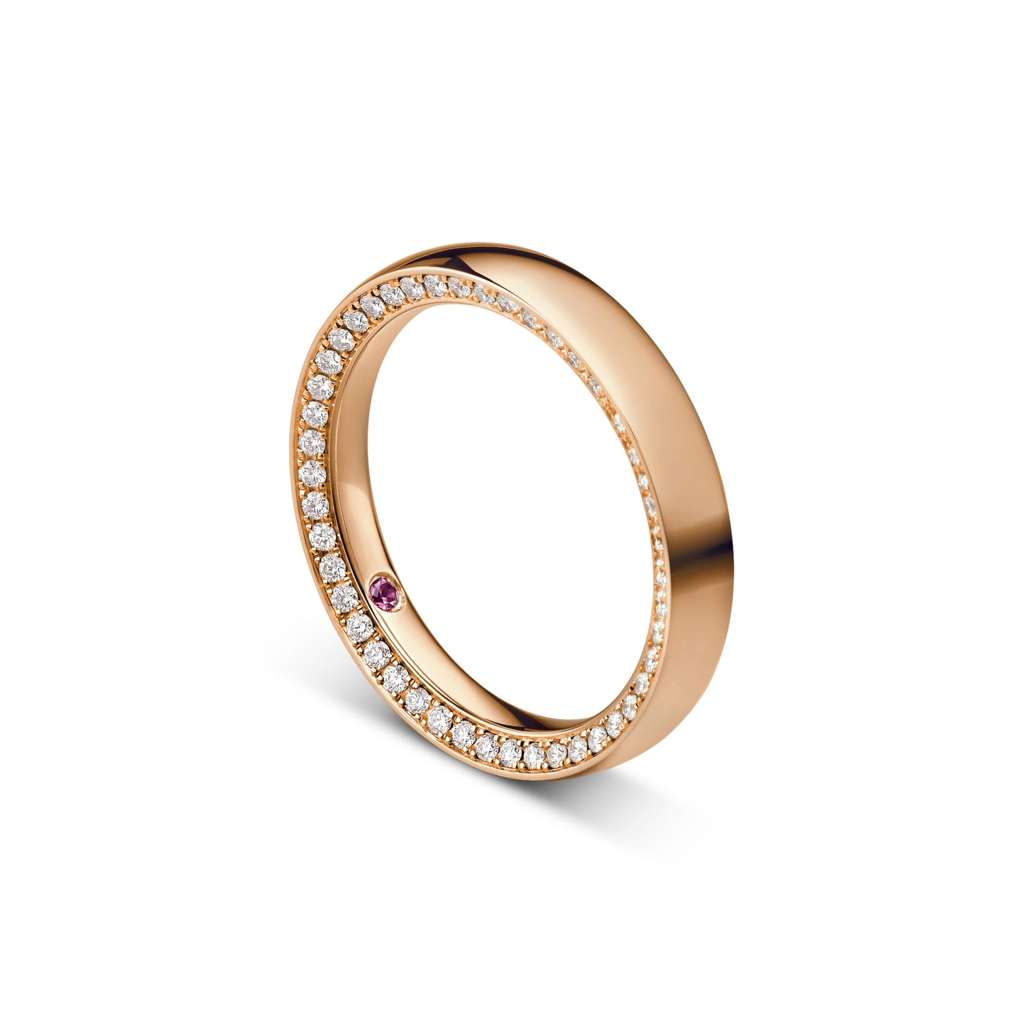 Wedding band in red gold with brilliant-cut diamonds.