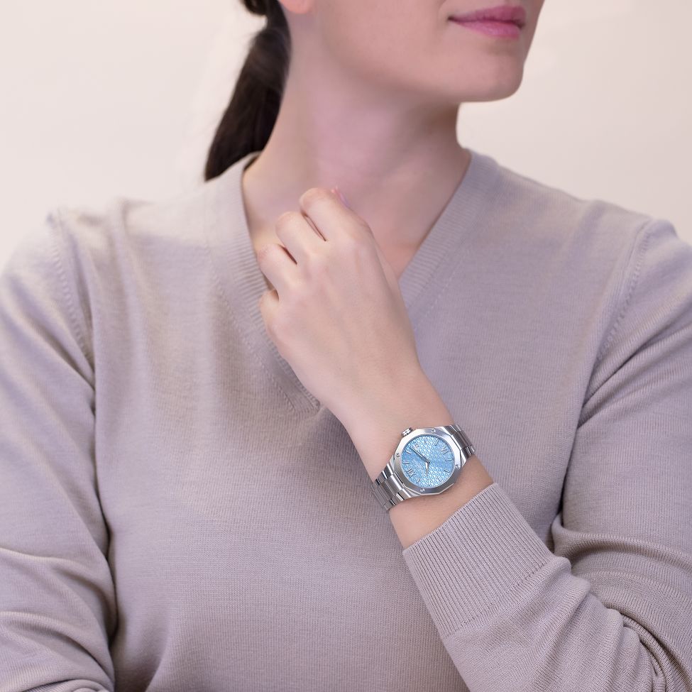 名士表利维拉系列腕表,以独特的图案化表盘来颂扬著名的法国海岸线,让人想起大海和山脉。 不锈钢表壳搭配十二边型表圈。 在湛蓝色表盘上,罗马数字时标、镀铑太妃式指针及日期窗口精巧搭配。 这款腕表搭载瑞士制造石英机芯,防水深度达50米。 不锈钢链式表链搭配三重折叠式表扣和快速表带系统,为这款腕表增添点睛之笔。
