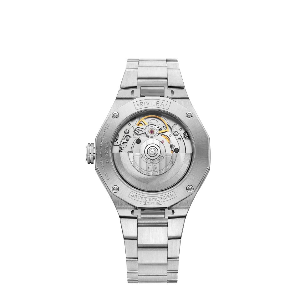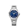 名士推出 Riviera 系列的全新表款,优雅的 36 毫米直径女性化款式。 四颗螺丝将标志性的十二边形表圈锁定在不锈钢表壳上。 在蓝色图案表盘上,罗马数字和镀铑太子妃指针与日期视窗相得益彰。 透明底盖可一览这款时计的自动上链机芯,防水深度达 50 米。 抛光不锈钢表链使手表更加完美。