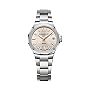 这款33毫米Riviera腕表拥有太阳缎面暖银色表盘,镀金罗马数字与指针覆以Superluminova夜光材料。十二边形不锈钢表壳配有3点钟日期窗口,搭载石英机芯。集成式金属表链支持快速更换,佩戴舒适且时尚。