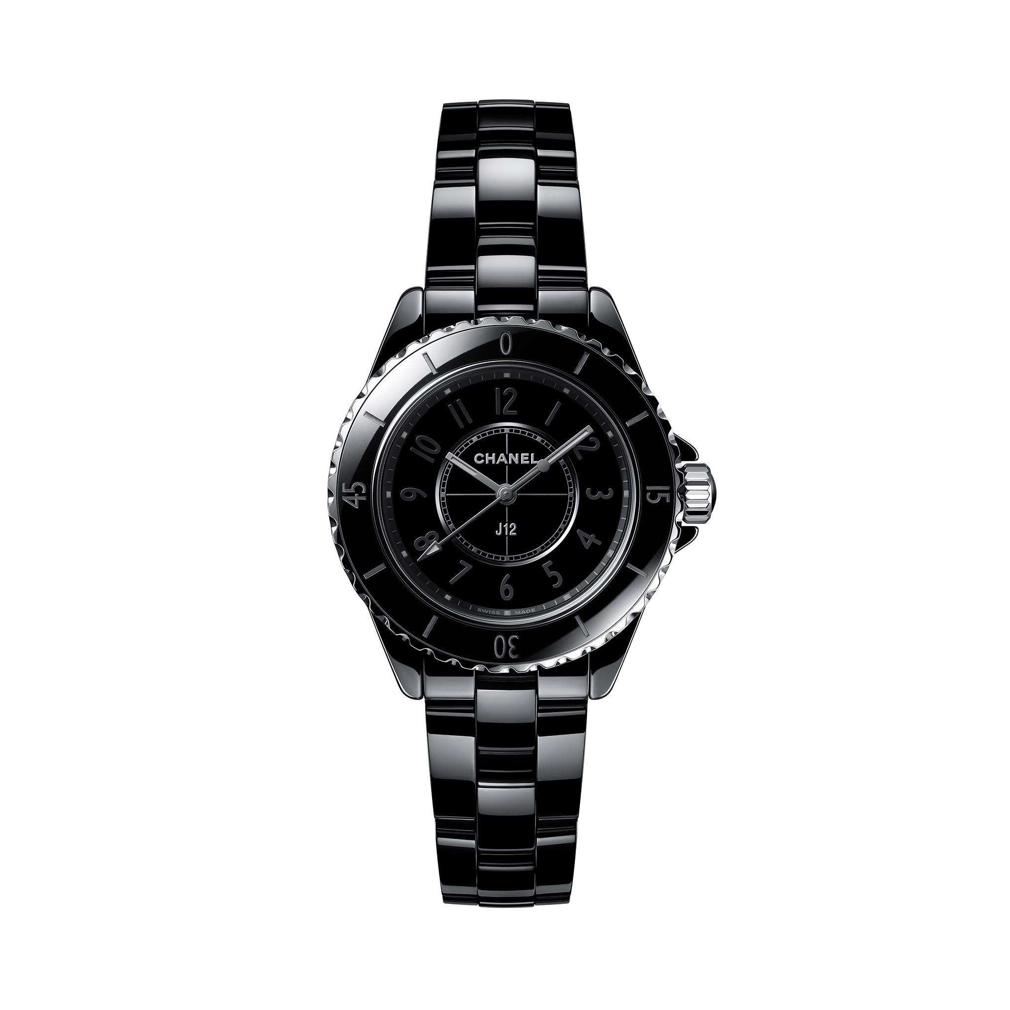 香奈儿对J12 Phantom系列腕表进行了重新设计,同时保留了钟表图标的标识。 黑色陶瓷和不锈钢表壳搭配精钢镶边单向旋转表圈。 黑色漆面表盘上饰有同色系的时标。 这款腕表搭载瑞士制造高精度石英机芯。 黑色陶瓷表链搭配折叠式表扣,为这款腕表增添点睛之笔。