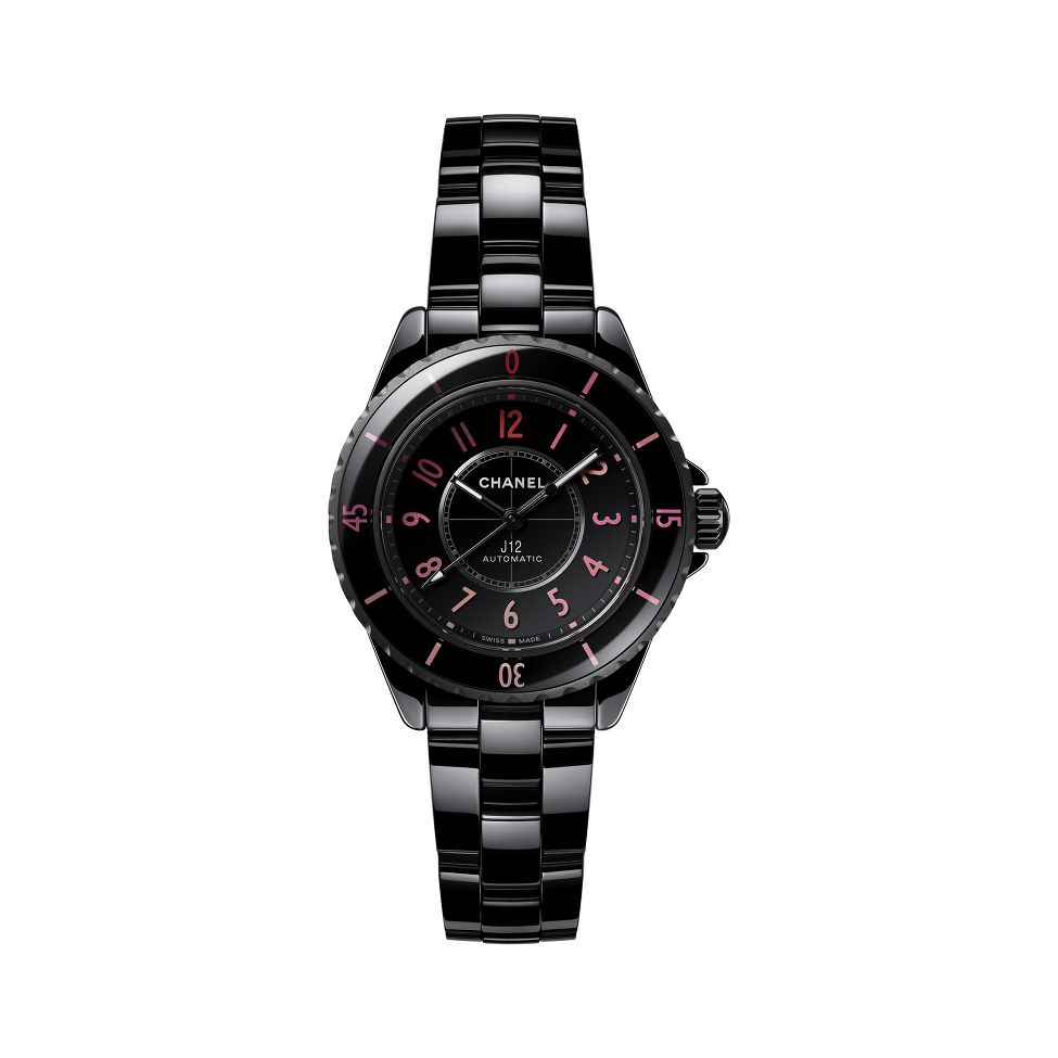J12 Blush限量腕表采用33毫米黑色陶瓷表壳,搭载12.2自动上链机芯,融合香奈儿标志性风格与卓越制表工艺。