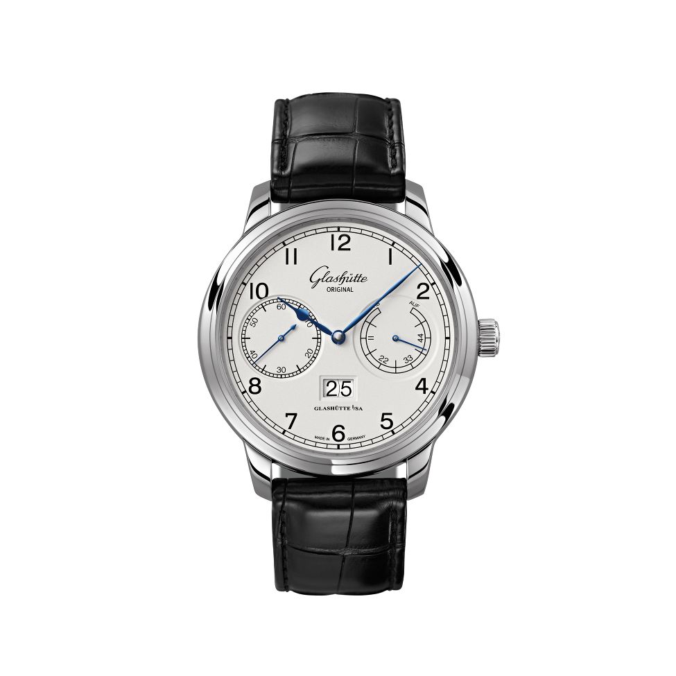 Glashütte Original Senator Observer 融合经典设计与德国精密制表工艺。精钢表壳内搭载自动上链 100-14 机芯,具备动力储存显示与大日历功能。中央指针精准指示时、分、秒,表盘布局均衡:3点位置为大日历,9点位置为动力储存显示。搭配优雅皮革表带,此腕表展现传统与现代工艺的完美结合。