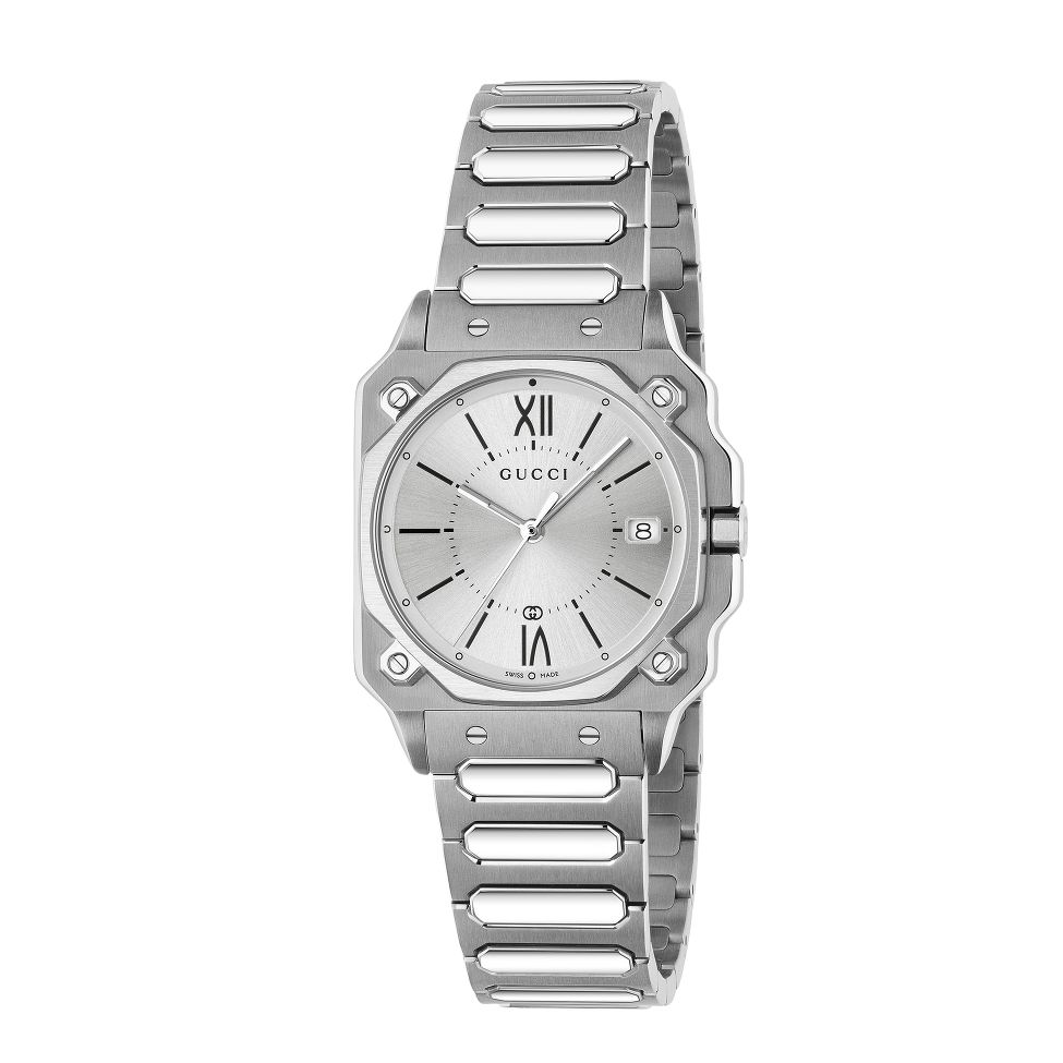这款 G-Flat 腕表采用30毫米不锈钢表壳,银色表盘配备实用的日期显示,呈现简约日常之美。搭载瑞士石英机芯,配有耐用的不锈钢表链。防刮抗反光蓝宝石镜面提升清晰度,5 ATM 防水性能满足日常佩戴需求。是一款兼具功能与风格的中性腕表。