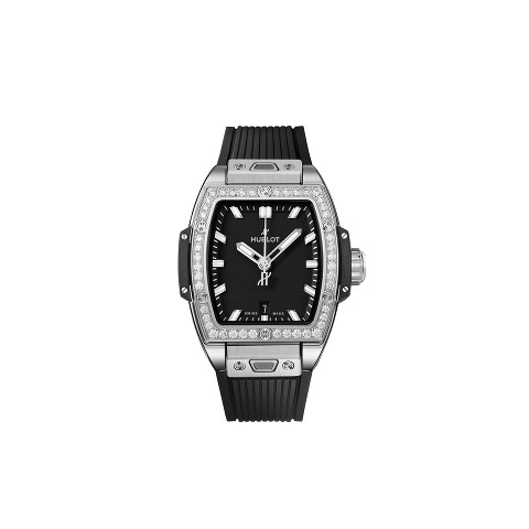 秉承 Big Bang Steel Diamonds 精神,宇舶表在独特的酒桶形系列中采用多层结构,重塑优雅气质。 32 毫米抛光缎面精钢表壳配有镶有 44 颗钻石的表圈,并由六颗标志性 H 形钛金属螺丝固定。 夜光镀铑时标和指针与哑光白色表盘相得益彰,六点钟位置设有日期窗口。 HUB1120自动上链机芯确保40小时的动力储存。 白色结构橡胶表带增添了点睛之笔。