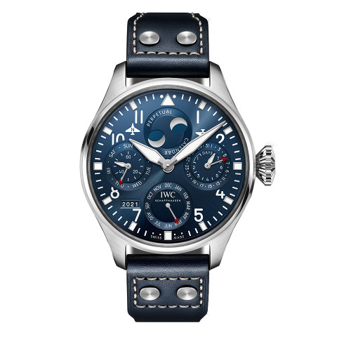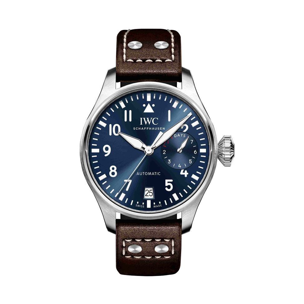 万国表凭借大型飞行员腕表" 小王子"版庆祝举世闻名的航空先驱。 46.2毫米精钢表壳呈现了深蓝色表盘,并在六点钟位置设有日期窗口。 自动上链腕表三点钟显示7天的动力储备,并配有柔软的铁质内壳,非常适合飞行。 底盖上刻有小王子的圣艾修伯里刻图。 棕色Santoni小牛皮表带带来画龙点睛的效果。