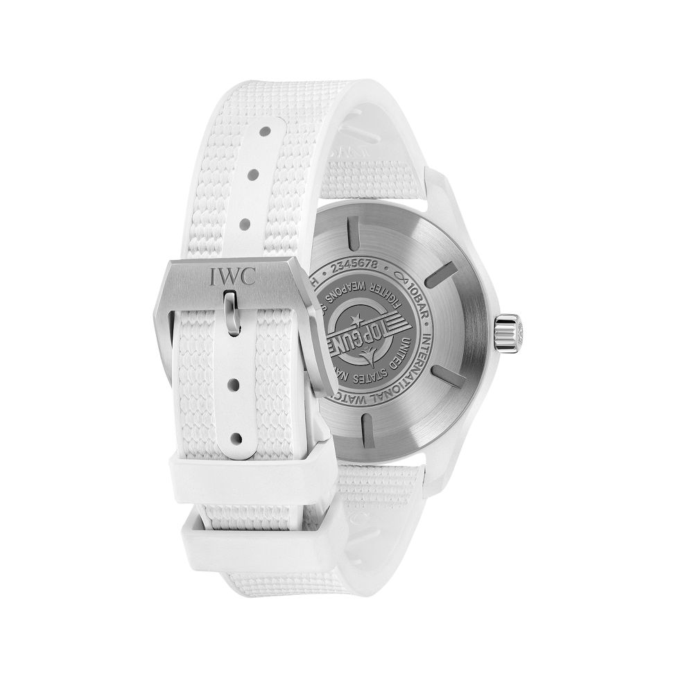 IWC飞行员41毫米TOP GUN"Lake Tahoe"腕表采用白色陶瓷表壳,灵感源自塔霍湖冬日风景。黑色表盘搭配白色Super-LumiNova®涂层数字与指针,钛金属底盖刻有TOP GUN图案,搭载32112自动机芯,动力储存达120小时。