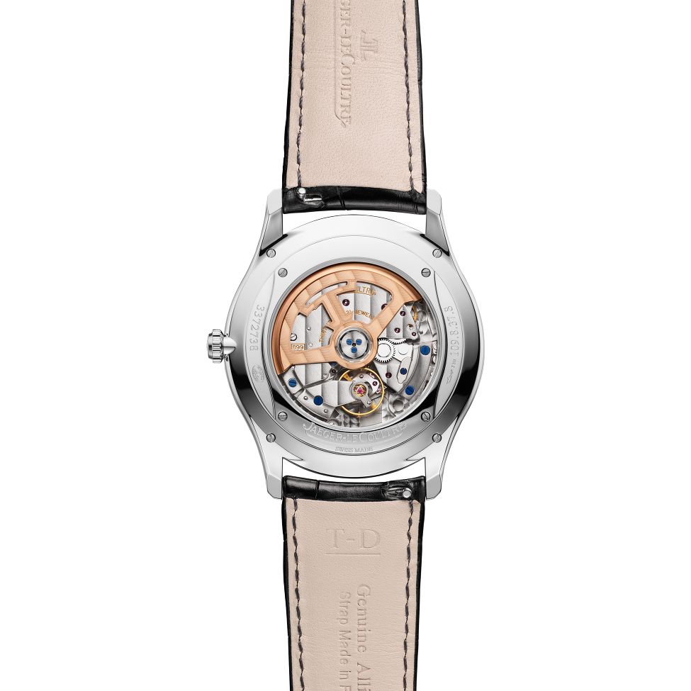 Master Ultra Thin Date 腕表展现经典优雅与现代精致风范。39毫米精钢表壳,厚度仅7.8毫米,搭配蓝灰色太阳放射纹表盘、梯形时标与太子妃式指针。搭载品牌自制899机芯,经蓝钢螺丝与日内瓦波纹修饰,动力储备达38小时。