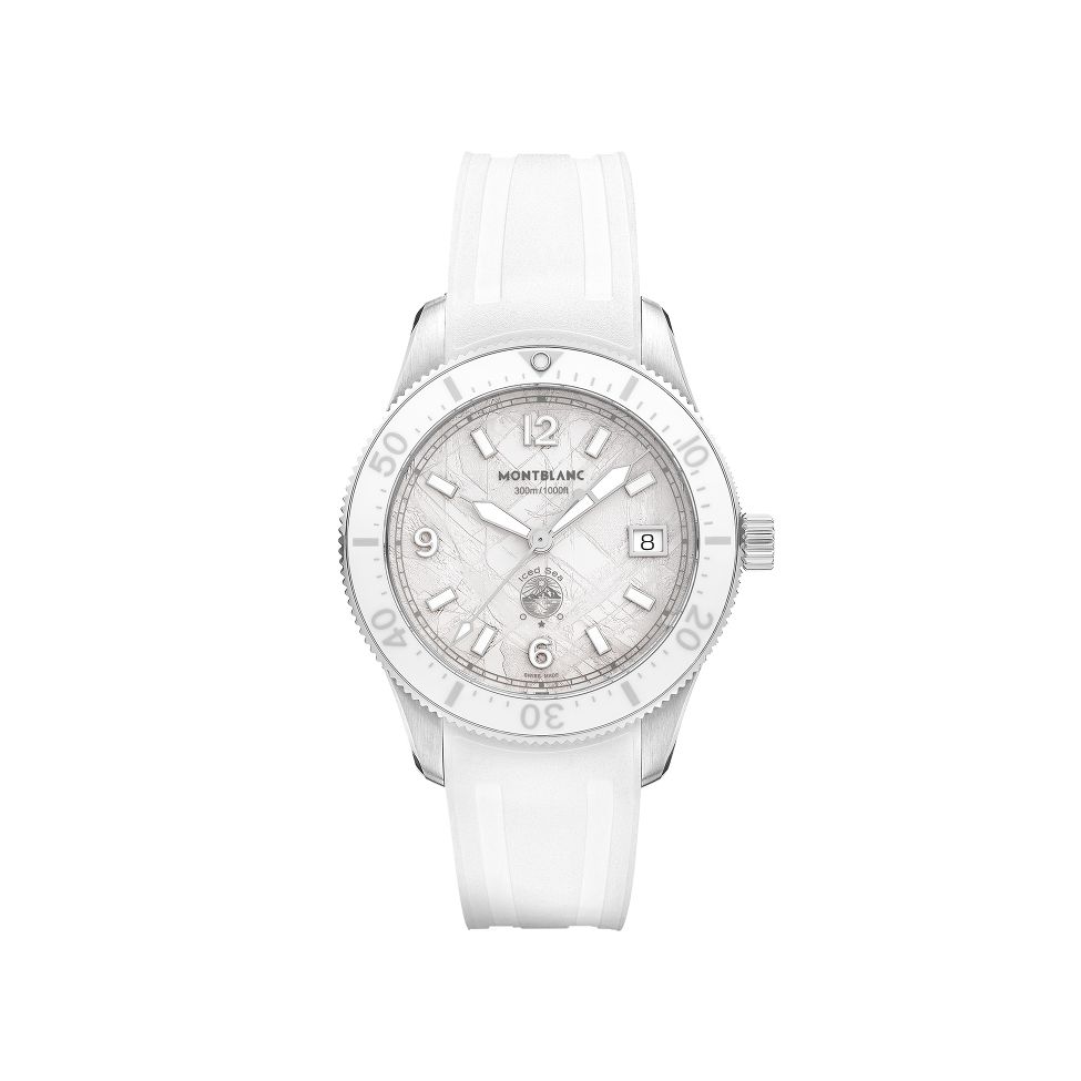 万宝龙Iced Sea 0氧自动日期腕表配备灵感源自"冰海"的白色冰川图案表盘,采用gratté-boisé工艺打造。38毫米无氧精钢表壳,搭载MB 24.17自动机芯,具备单向旋转表圈、300米防水性能。