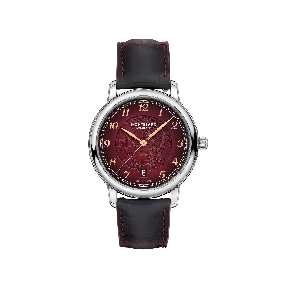 万宝龙Star Legacy自动日历腕表限量版(1786枚)是为了纪念第一位登上勃朗峰的雅克-巴尔马特(Jacques Balmat)。39 毫米精钢表壳搭配酒红色表盘,表盘上有冰川图案和sfumato效果。腕表搭载 MB 24.17 自动机芯,动力储存 38 小时。