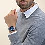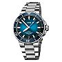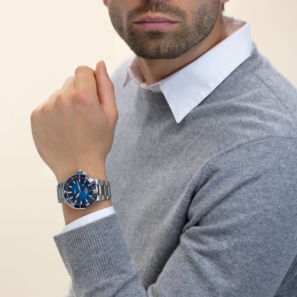 豪利时 AQUIS 400 自主机芯日历腕表,产品制造活动全新标准订立之作。 43.5 毫米不锈钢表壳搭配凹刻蓝色陶瓷表圈; 蓝色表盘上设有日历视窗,搭配高亮荧光涂层时标和指针; 透过透明后壳,可见可靠性超高的豪利时 400 型自动上链防磁机芯; 不锈钢链式表链搭配折叠式表扣更显精密质感。