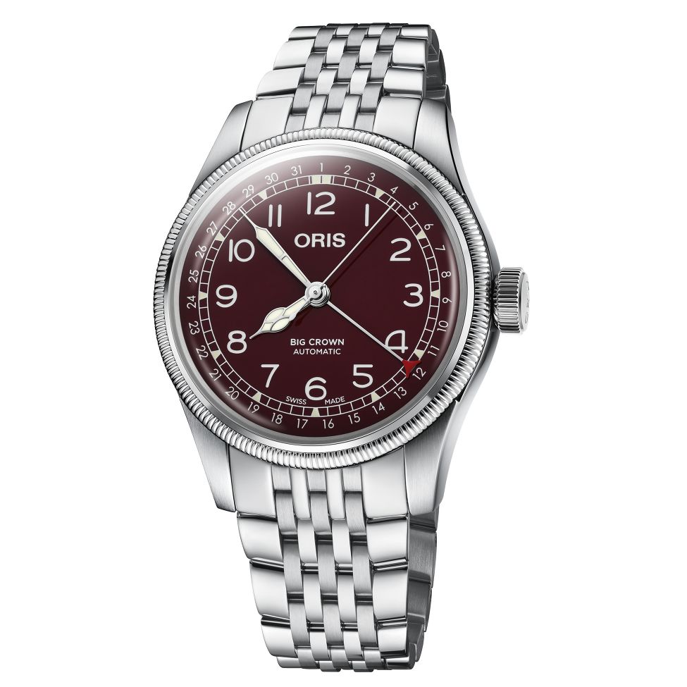 豪利时大表冠指针日历腕表,复古风情与现代功能集成佳作。 40 毫米不锈钢表壳,红色表盘搭配荧光阿拉伯数字时标和指针,还设有日历指针和双轨式分钟刻度; 通过透明后盖可见豪利时 754 型自动机芯;不锈钢链式表链搭配折叠式表扣,更显精密质感。