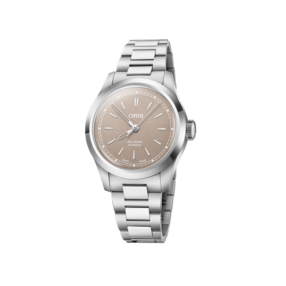 这款 34 毫米 Oris Big Crown 腕表采用多部件不锈钢表壳,搭配双面弧形防反光蓝宝石水晶镜面,透底设计,内部搭载精密的 Calibre 531 自动上链机芯,展现经典与功能兼具的魅力。