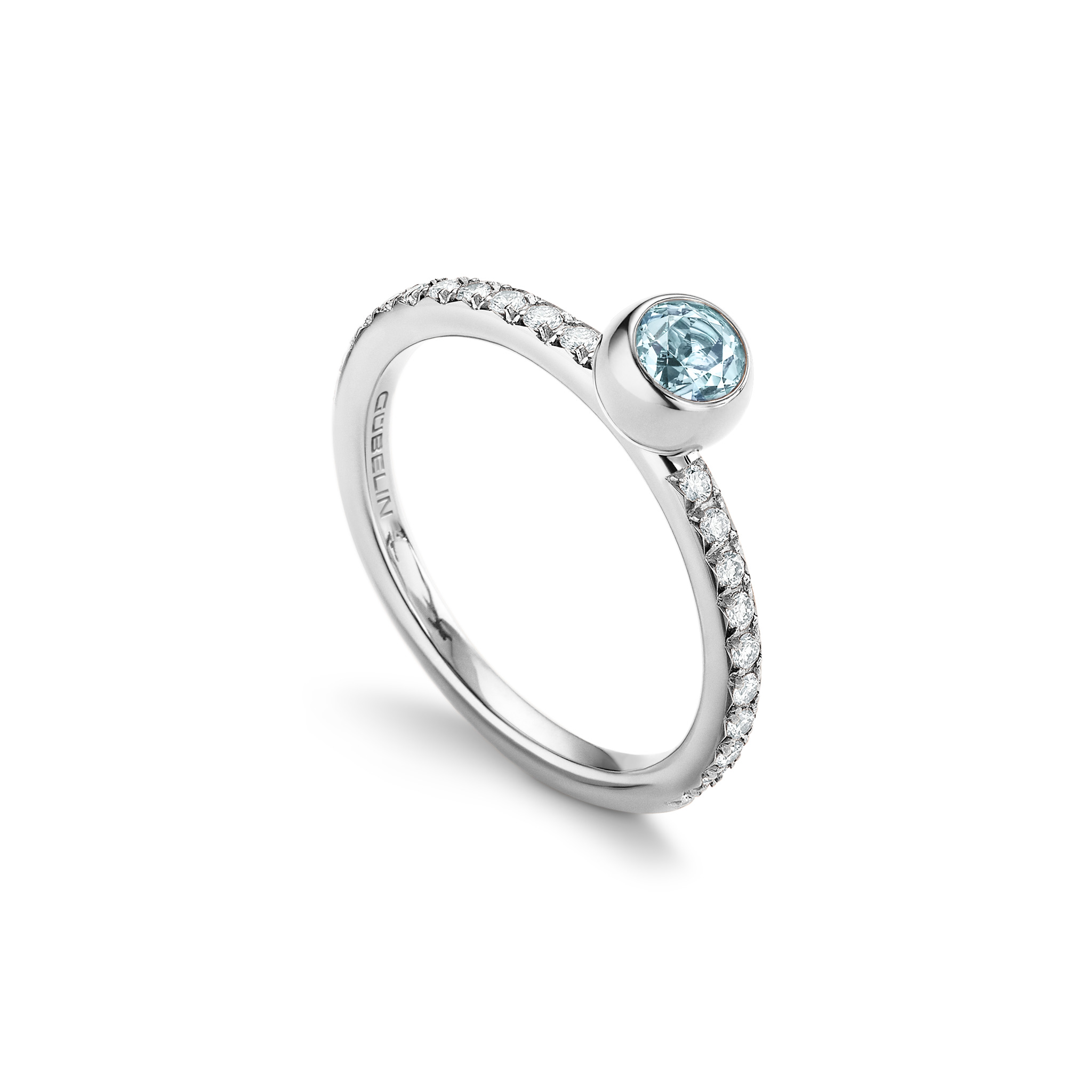 白金戒指,嵌有1颗0.30克拉圆形浅蓝色海蓝宝石及24颗总重0.18克拉明亮琢型钻石。