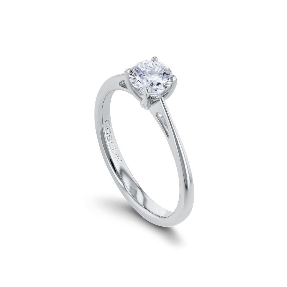 白金戒指,镶嵌一颗明亮式切割钻石,0.58 克拉。